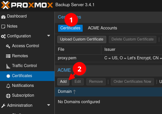 Proxmox Backup Server - Provisioning Certificates Through DNS Challenges